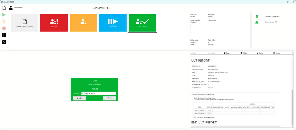 Med GPower SmartUI som hjørnesten var det muligt at udvikle en løsning, som giver operatører en intuitive måde at håndtere testprocessen på. Det moderne brugerinterface er designet til at reducere kompleksitet og fjerne unødigvendig støj, så testprocessen bliver enklere og mere effektiv.