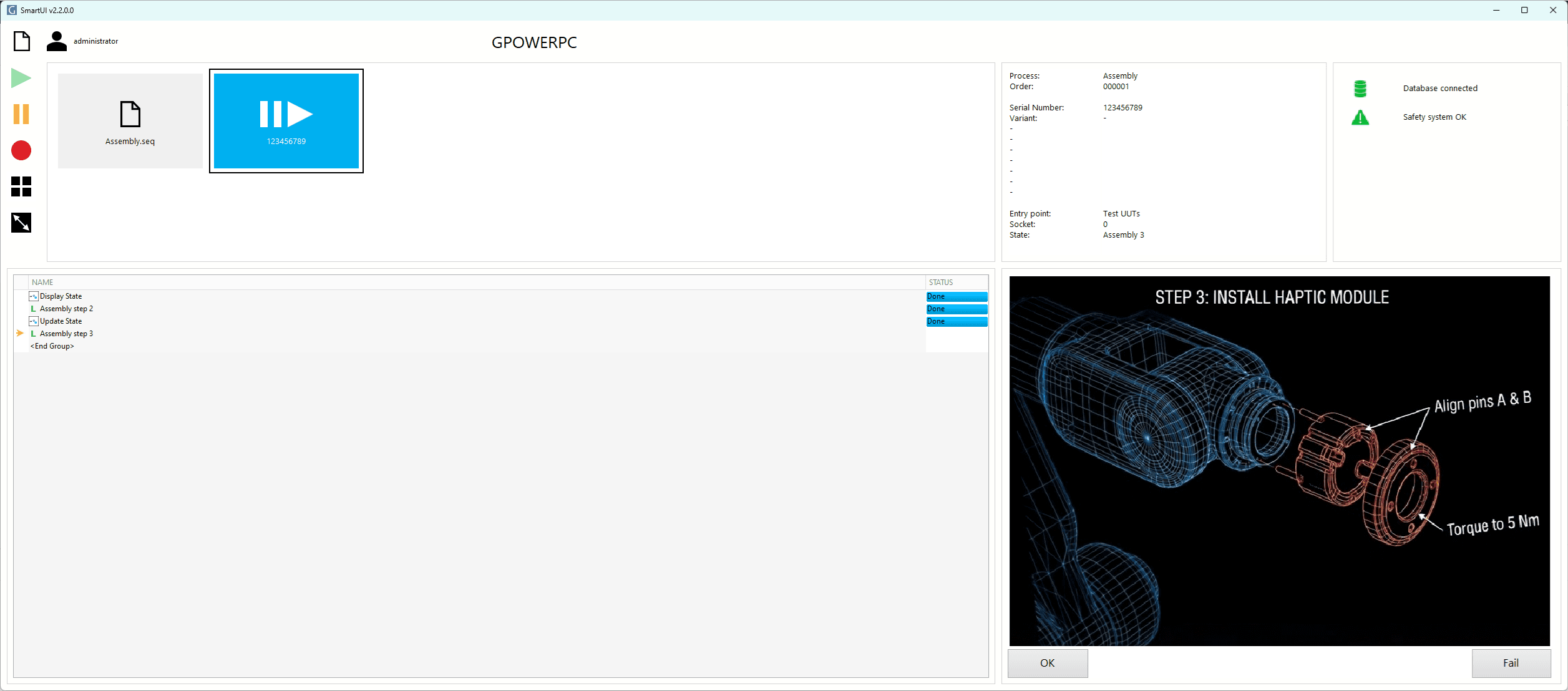 Under udviklingen af et nyt produkt havde vi behov for både software og testudstyr. GPower løste opgaven med bl.a. deres SmartUI, som gav vores operatører de nødvendige inputs til montage af enheder i et nemt overskueligt intuitivt interface.